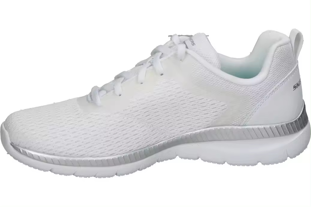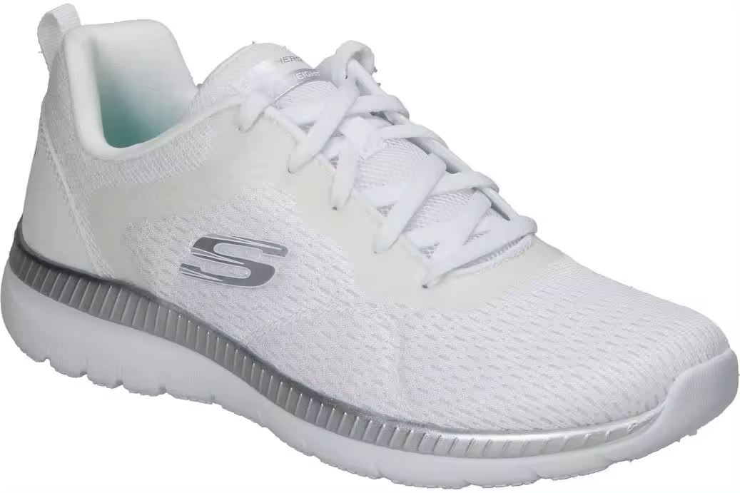 La flexibilidad y la amortiguación que requiere tu entrenamiento con el estilo de SKECHERS Bountiful - Quick Path. Parte superior de suave malla knit y tejido liso sintético en una zapatilla deportiva con cordones, detalles de costuras y plantilla SKECHERS Memory Foam.