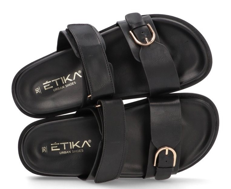 • ETIKA 10066 Las Sandalias Planas con velcro y hebilla en color negro son la elección perfecta. Su diseño plano con velcro y hebilla les da un toque moderno y son ideales para cualquier look casual de verano. Imagina: Un paseo por la ciudad: Lucirás un look moderno y relajado con estas sandalias que combinan con vestidos, faldas o pantalones cortos. Una tarde de compras: Estarás cómoda y con un toque de estilo con estas sandalias que le darán un toque especial a tu look. Un evento casual: Serás el centro de atención con estas sandalias que le aportarán un toque de distinción a tu outfit.