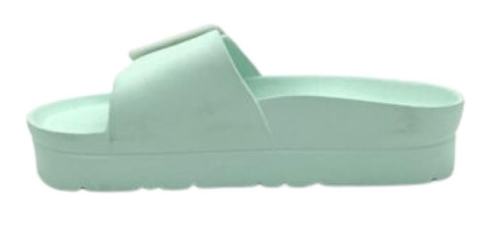 Chancla de plataforma con una hebilla grande en el empeine que permiten un perfecto ajuste al pie. Un modelo ultraligero apto para la playa y la piscina.