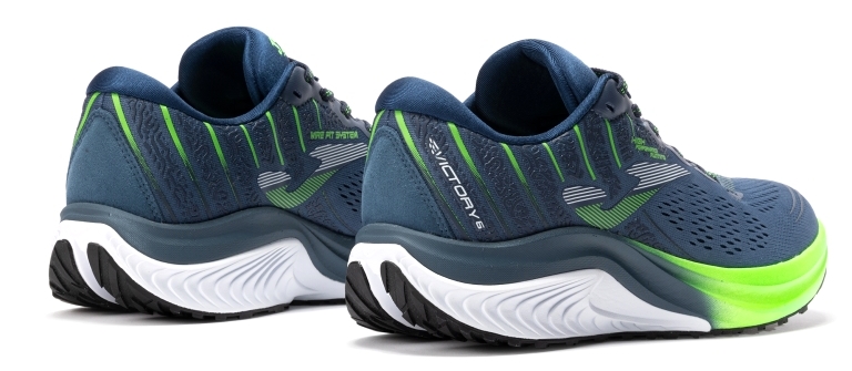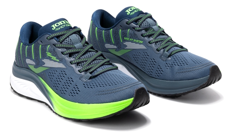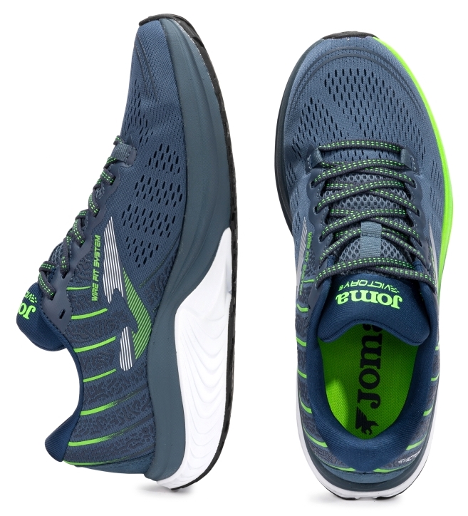 • JOMA VICTORY 2517 Zapatillas de running para hombre. Las Victory son unas zapatillas muy cómodas y permiten disfrutar al máximo de las sesiones de entrenamiento. Upper elaborado con mesh acabado en Jacquard, muy ligero y transpirable gracias a las perforaciones. que optimizan la ventilación del sudor y permiten la circulación del aire dentro de las zapatillas. La tecnología avanzada VTS incorporada mejora la transpirabilidad y el confort, reduciendo la acumulación de calor dentro de la zapatilla. Asegura que el pie se mantenga fresco y cómodo durante todo tu entrenamiento o competición. Sistema de ajuste termosellado JOMA SPORTECH, que brinda sujeción sin añadir peso extra. Mediasuela ligera y con buena capacidad para absorber los impactos (Drop 8 mm). Su construcción con phylon, un material liviano, funcional y flexible, ofrecen un uso cómodo durante los entrenamientos. Suela de caucho DURABILITY de alta calidad y resistencia a la abrasión en asfalto.