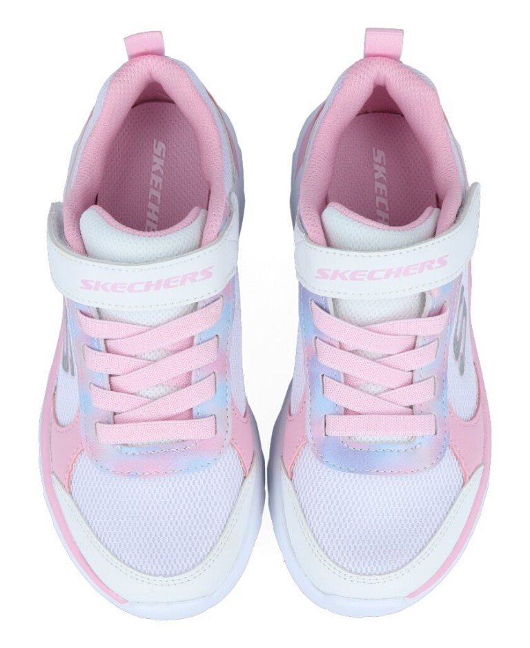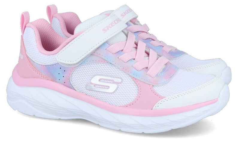 Zapatillas velcro Skechers 303628L Watercolor Blurn infantiles en color blanco y rosa. Características: zapatillas deportivas con cordones elásticos y cierre de velcro, altura de piso 3 cm, piso de goma termoplástica, material exterior sintético con forro textil y plantilla memory foam.
