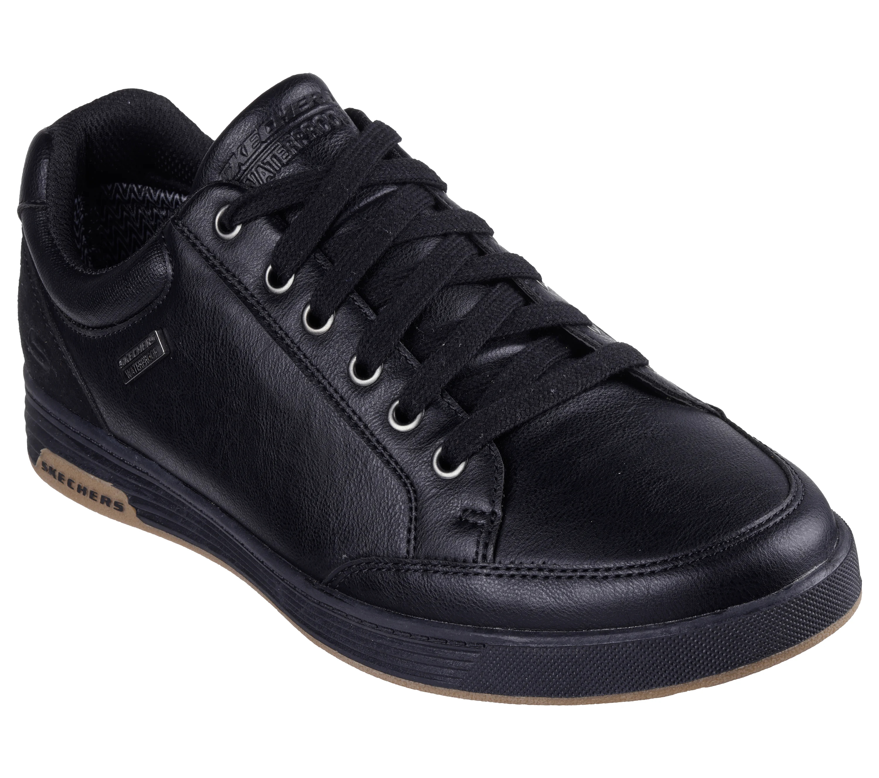 Evita mojarte durante los días de lluvia con la elegancia informal de las Skechers Cavell - Sparkman. Este modelo waterproof con cordones presenta una parte superior de piel sintética lisa con ribete en el talón y una cómoda plantilla con amortiguación Skechers Air-Cooled Memory Foam.
