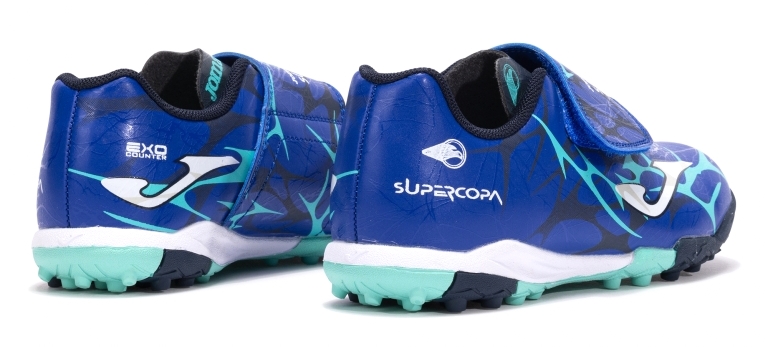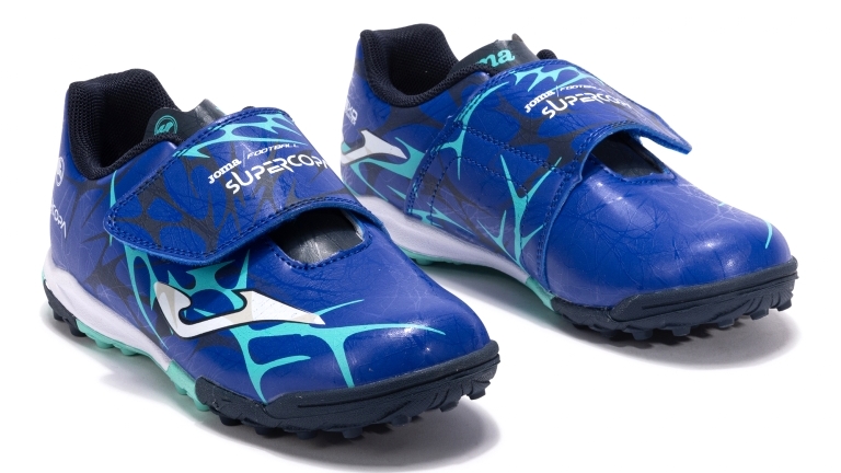 • JOMA SUPERCOPA 2504 TURF Botas de fútbol para niño y niña. Modelo de turf, diseñado para ofrecer un excelente rendimiento en terrenos duros o césped corto, siendo la opción perfecta para los más pequeños que inician su aventura en el fútbol. Su corte de Fibertech proporciona durabilidad y ligereza, adaptándose perfectamente a las exigencias del juego y al ritmo activo de los niños. La suela es de caucho DURABILITY de alta calidad con buena resistencia al desgaste por abrasión y agarre a la superficie. Con estructura multitaco que disminuye la presión de la pisada y asegura un buen apoyo.