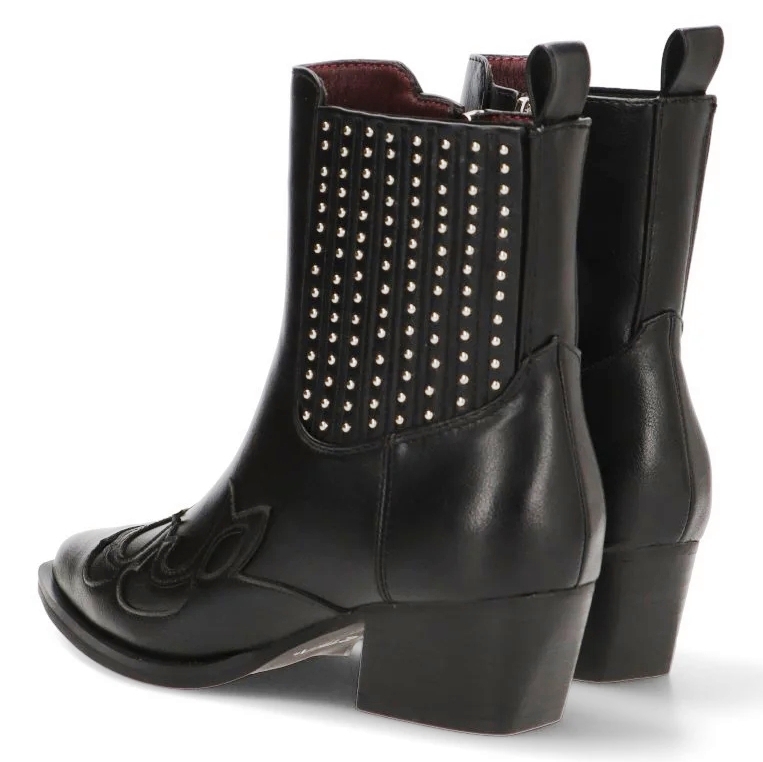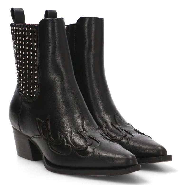 • ETIKA 110547 BOTIN CAMPERO TACHAS FLORENCE Si buscas un calzado que fusione la tendencia del estilo western con un toque de rock and roll, el Botín Campero Tachas Florence 110547 de ETIKA es la elección perfecta. Este modelo, diseñado para la mujer que pisa fuerte y con personalidad, te permitirá crear looks con carácter sin renunciar al confort. Este botín, con su distintivo y elegante, es una pieza clave para realzar tu estilo. Su diseño campero, reinterpretado de manera moderna, se adapta perfectamente tanto a ambientes casuales como a ocasiones más especiales. Los detalles de tachas metálicas estratégicamente colocadas le dan un aire moderno y audaz, perfecto para quienes buscan destacar. El tacón medio de 5 cm proporciona la altura ideal para estilizar la figura, manteniendo al mismo tiempo un gran confort y estabilidad, ideal para llevarlos durante todo el día. La caña de 18 cm abraza el tobillo, creando una silueta limpia y favorecedora.