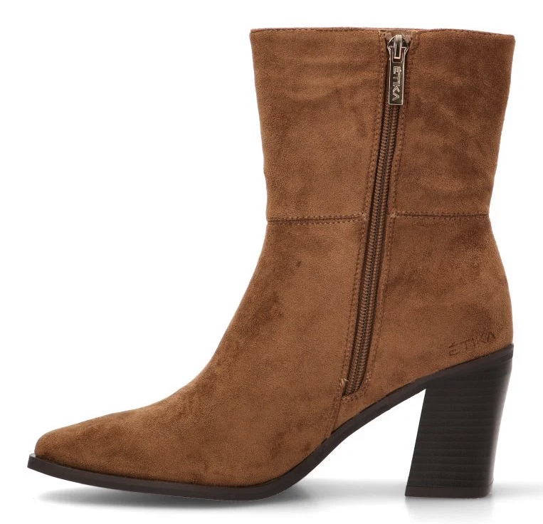 El tacón alto de 8 cm proporciona una altura imponente y atractiva, perfectamente equilibrada para estilizar la figura sin comprometer demasiado la estabilidad. La caña de 19 cm sube por la pantorrilla, creando una silueta limpia y favorecedora que se adapta bien a pantalones, faldas y vestidos. El cierre de cremallera es un elemento funcional que permite que te los pongas y te los quites de forma rápida y sencilla. ETIKA ha logrado un equilibrio perfecto entre la estética de pasarela y la funcionalidad del día a día.