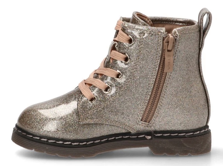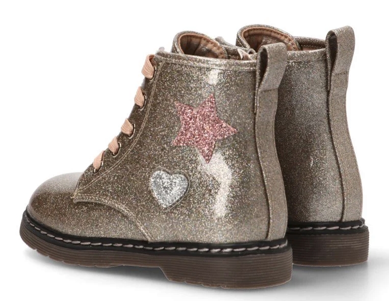 Este botín destaca por su originalidad. A primera vista, su diseño militar le da un aspecto audaz y robusto, ideal para las exploradoras más intrépidas. Pero, al mismo tiempo, los sutiles y encantadores detalles de estrellas y corazones le añaden un toque de fantasía y magia. Los cordones no solo son un elemento de diseño, sino que también permiten un ajuste perfecto y seguro, ideal para las pequeñas que no paran de moverse.