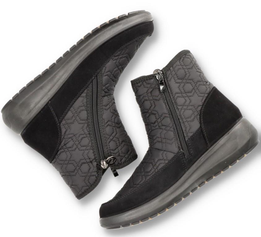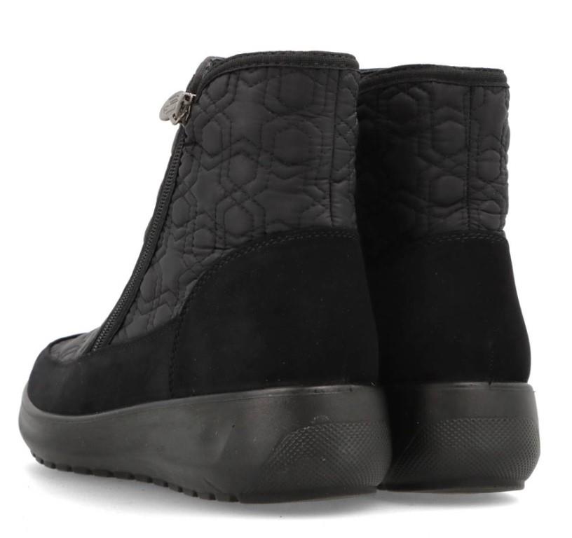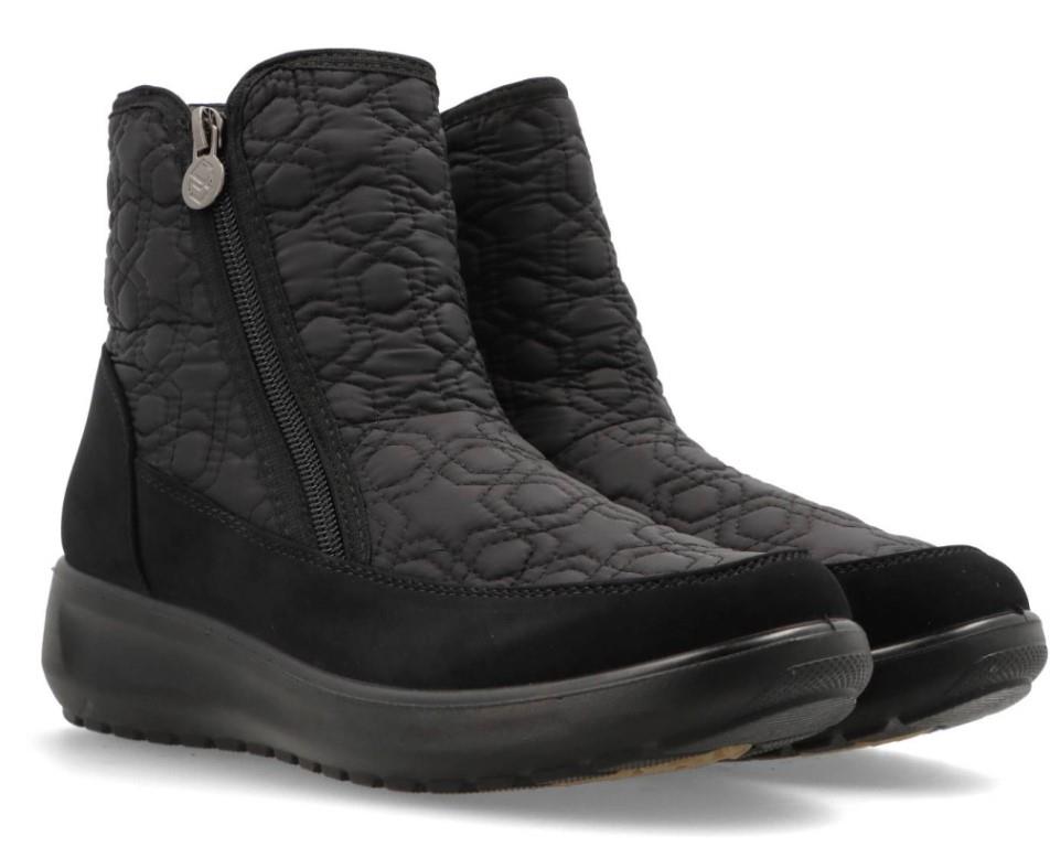 Botín de mujer 25M654 de Mysoft. De tejido acolchado REPELENTE AL AGUA. Interior en tejido suave y cálido, con plantilla extarible memory foam para una pisada más comoda. Suela de goma flexible y ligera con patín antideslizante. Cuña de unos 4.5cm de altura. Cremallera lateral para facilitar su puesta.