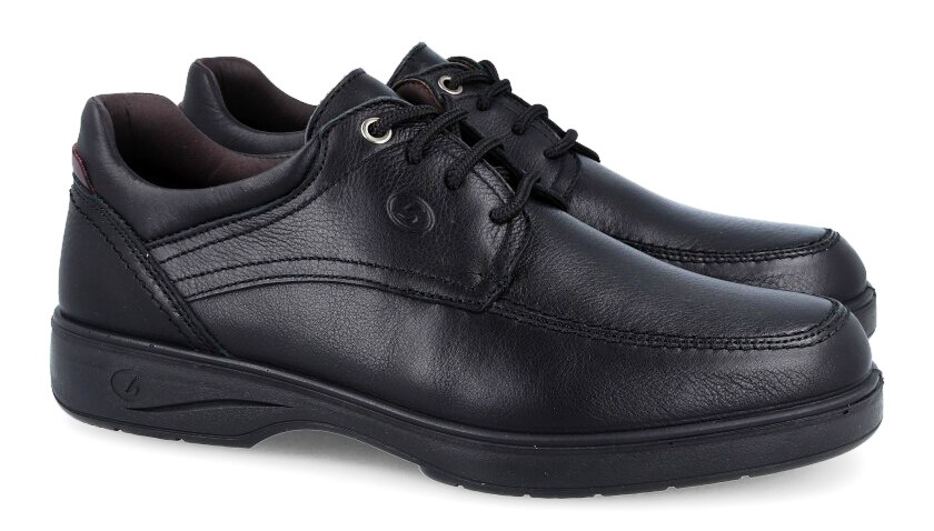 Características: cierre con cordones, altura de piso 3 cm, piso de goma termoplástica, material exterior de piel y plantilla transpirable extraíble.