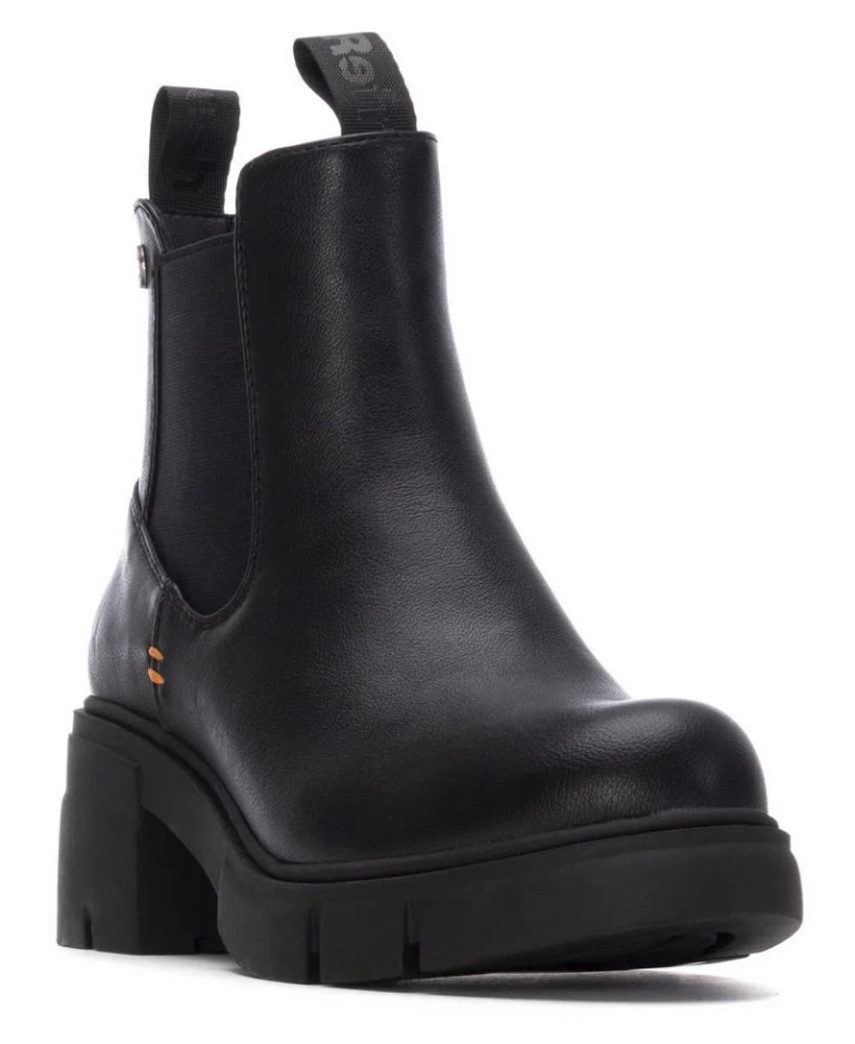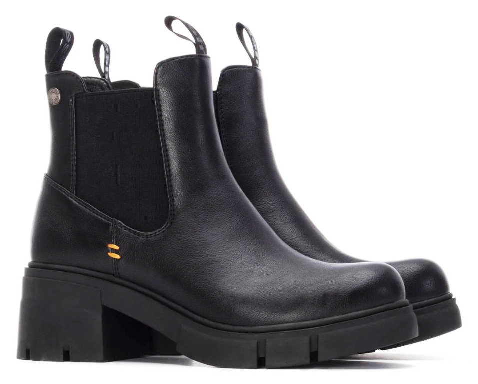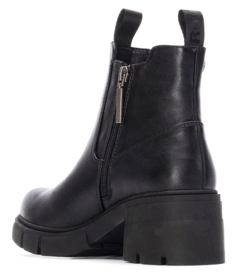 Botín de mujer, de la marca Refresh. Fabricada en material que imita a la piel. Botín tipo chelsea con cremallera interior. Tiradores delantero y trasero para facilitar la puesta. Cómoda planta. Tacón en bloque de 7 cm. Suela de goma antideslizante. Plantilla extraíble. Este modelo ha obtenido el certificado vegano por la organización mundial PETA (Organización de los derechos de los animales).