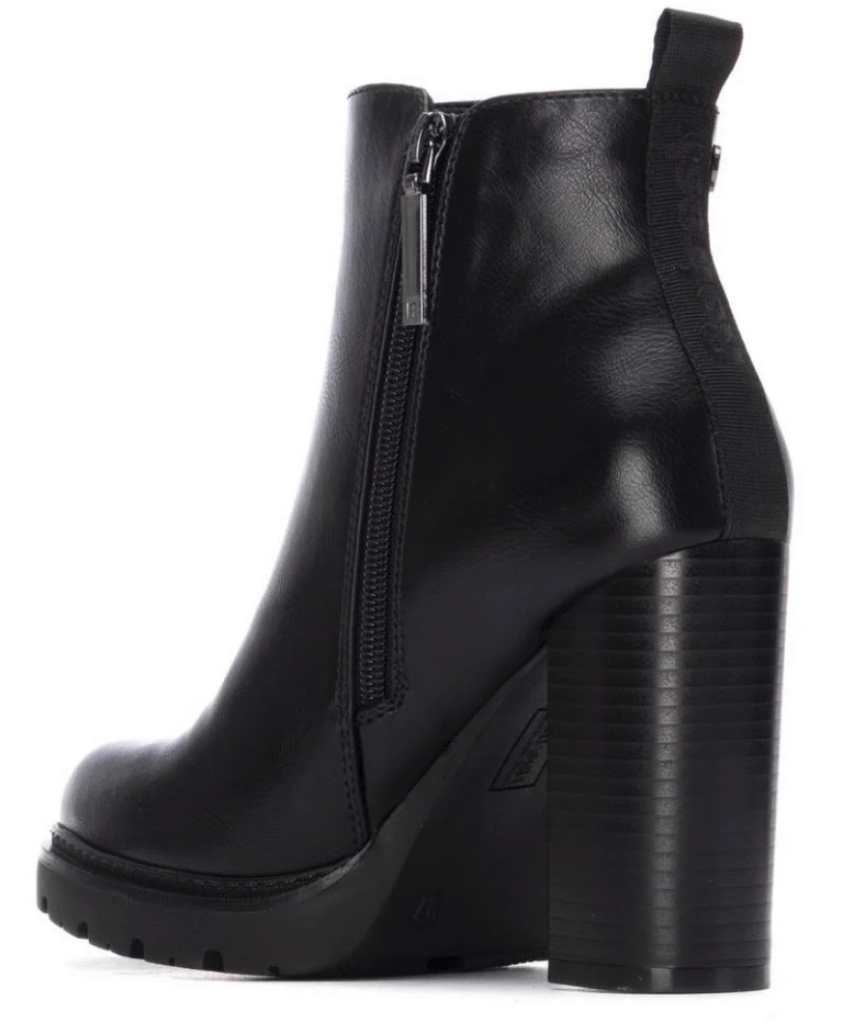 Botín de mujer, de la marca Refresh. Fabricado en material que imita a la piel. Cremallera lateral decorativa. Cierre mediante cremallera interior. Tirador trasero para facilitar la puesta. Suela de goma antideslizante. Tacón de 10 cm. Un Botín versátil para completar tus looks esta temporada. Este modelo ha obtenido el certificado vegano por la organización mundial PETA (Organización de los derechos de los animales).