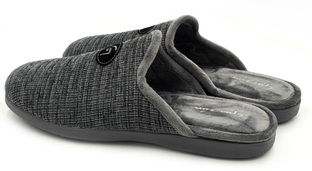 Zapatilla de Casa en chancla, fabricada en artículo Uman Gris Oscuro, piso de goma antideslizante. Fabricado en España por Vulcanizados Garzón.