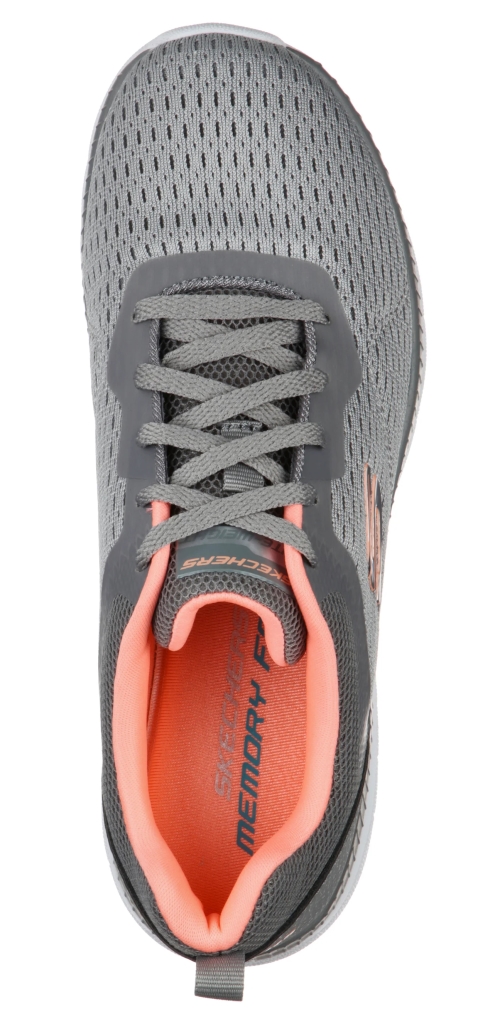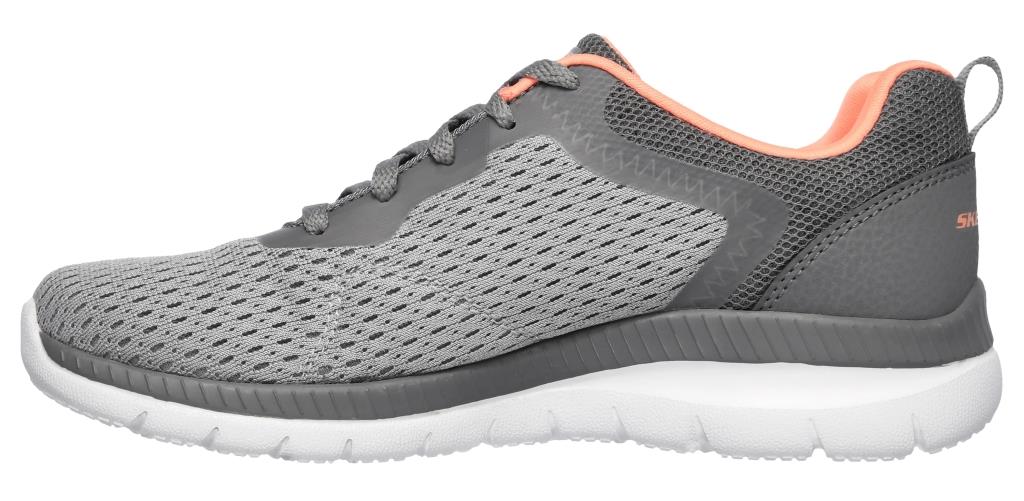 La flexibilidad y la amortiguación que requiere tu entrenamiento con el estilo de SKECHERS Bountiful - Quick Path. Parte superior de suave malla knit y tejido liso sintético en una zapatilla deportiva con cordones, detalles de costuras y plantilla SKECHERS Memory Foam.