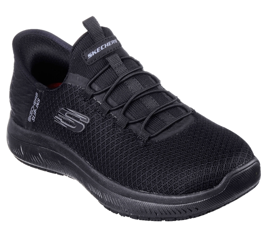 Disfruta de la seguridad antideslizante y cómoda del calzado sin cordones gracias a la Skechers Hands Free Slip-ins Work™: Summits SR - Enslee. Este modelo TOUCHLESS FIT para el trabajo presenta una parte superior de material sintético y malla de knit con nuestro Heel Pillow™, una suela antideslizante y una cómoda plantilla con amortiguación Skechers Air-Cooled Memory Foam™.