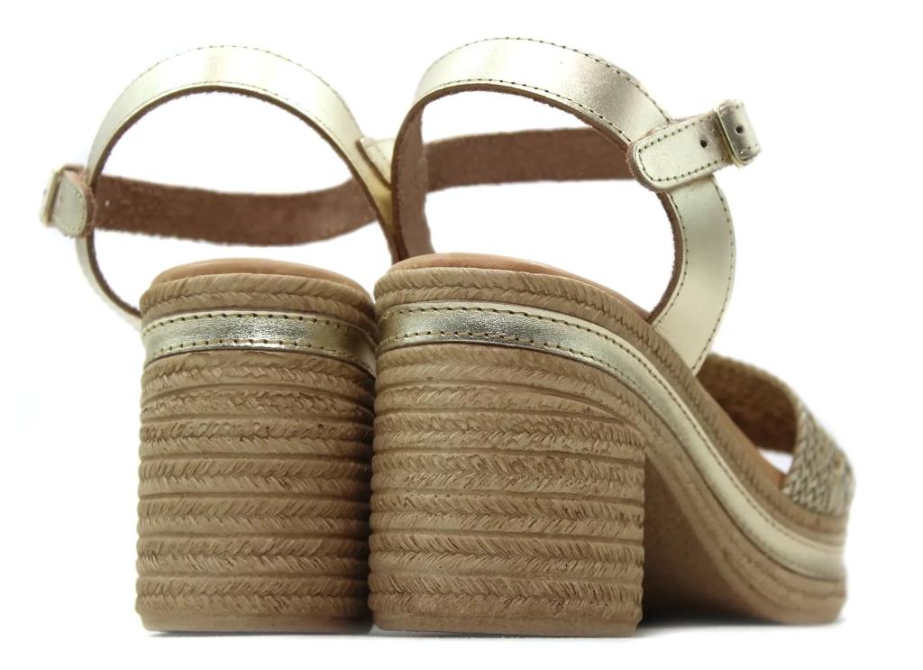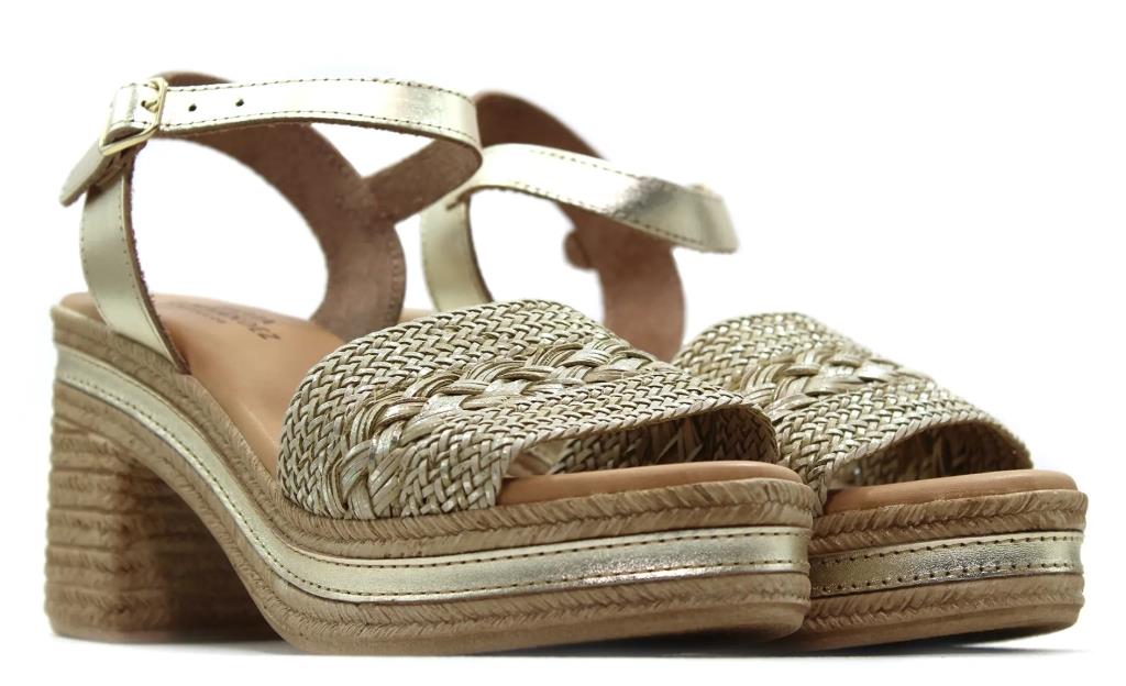 Sandalia con tacón y plataforma,suela imitación a esparto,cierre de hebilla al tobillo,planta de gel