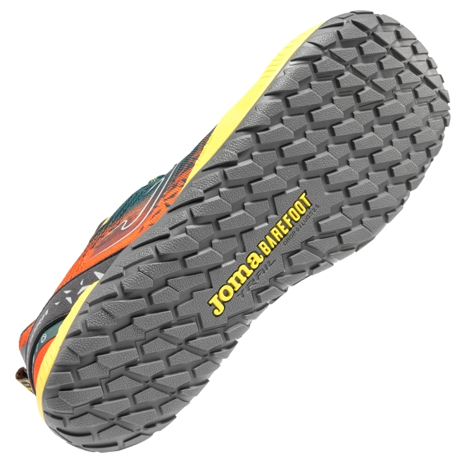 • JOMA TUNDRA BAREFOOT 2617 Zapatillas barefoot de hombre. Modelo para trail running. Su diseño biomecánico respeta el movimiento natural del pie y ofrece una experiencia de carrera más natural y eficiente. El upper está confeccionado en Jacquard técnico, un material ligero y transpirable que se adapta al contorno del pie para proporcionar un ajuste preciso, alta resistencia al desgaste y máximo confort en cada paso. Cuenta con una plantilla antibacteriana que combate el mal olor y facilita la evacuación del sudor, manteniendo los pies frescos y secos incluso en condiciones exigentes. La suela JOMA BAREFOOT, compuesta por phylon y caucho, ha sido diseñada para acompañar el movimiento natural del pie en todo tipo de terrenos. Incorpora la tecnología ZERO DROP, que favorece una pisada más natural, mejora la percepción del terreno, fortalece la musculatura del pie y reduce el riesgo de lesiones.