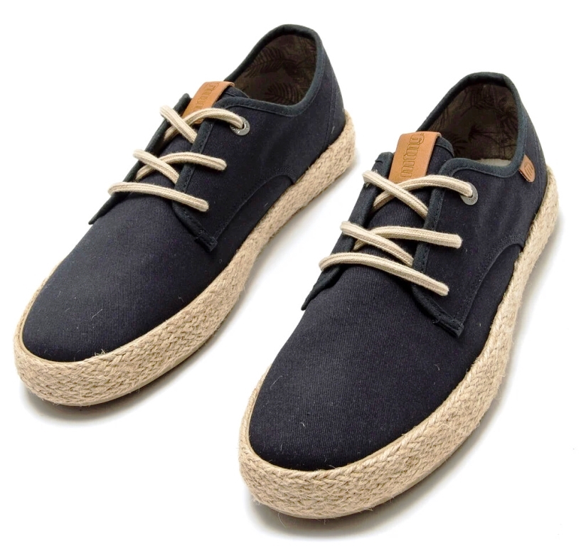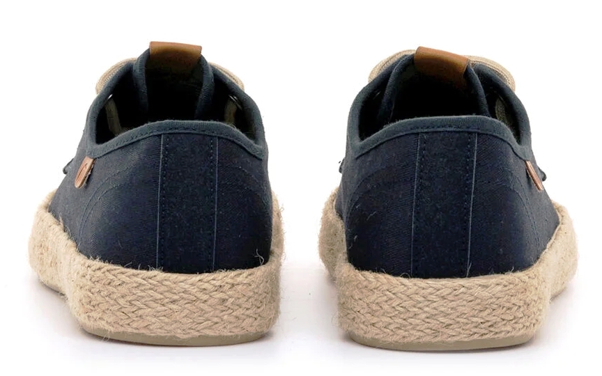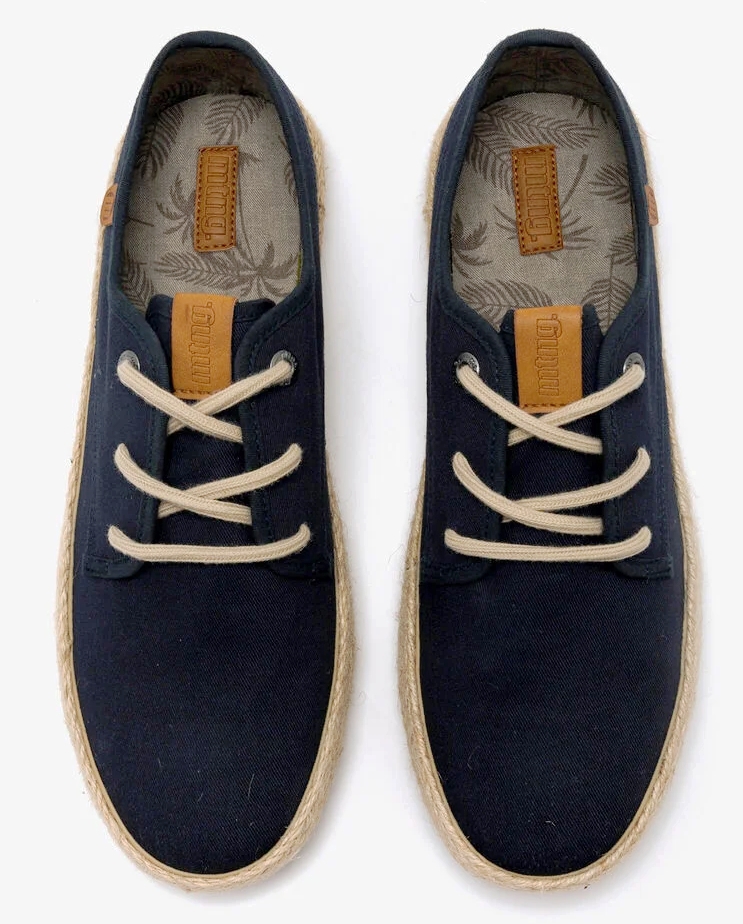 • MUSTANG 84843 NAPOLI Zapatillas de color azul marino para hombre de la marca Mustang, modelo Napoli, con diseño que aporta un aire veraniego. El diseño sencillo con cordones beige en contraste y acabados discretos las convierte en una opción fácil de combinar con looks informales. La suela trenzada tipo yute refuerza su estética fresca, ideal para los días más cálidos. Equipadas con plantillas con tecnología Starfit, que mejoran la comodidad en cada paso. Fabricadas con un 60% de algodón reciclado post consumo y un 40% de algodón convencional. Con certificado VEGANO sellado por INESCOP, el cual garantiza que la naturaleza química principal del material no se corresponde con fibras de origen animal.