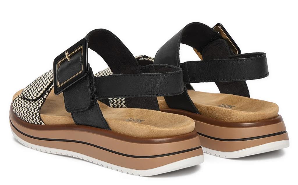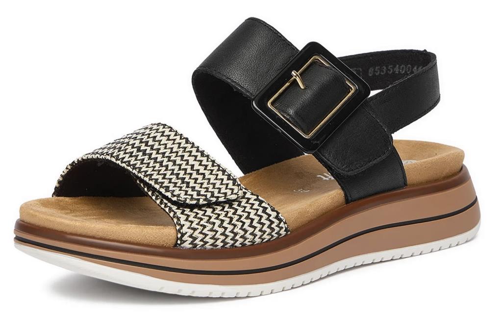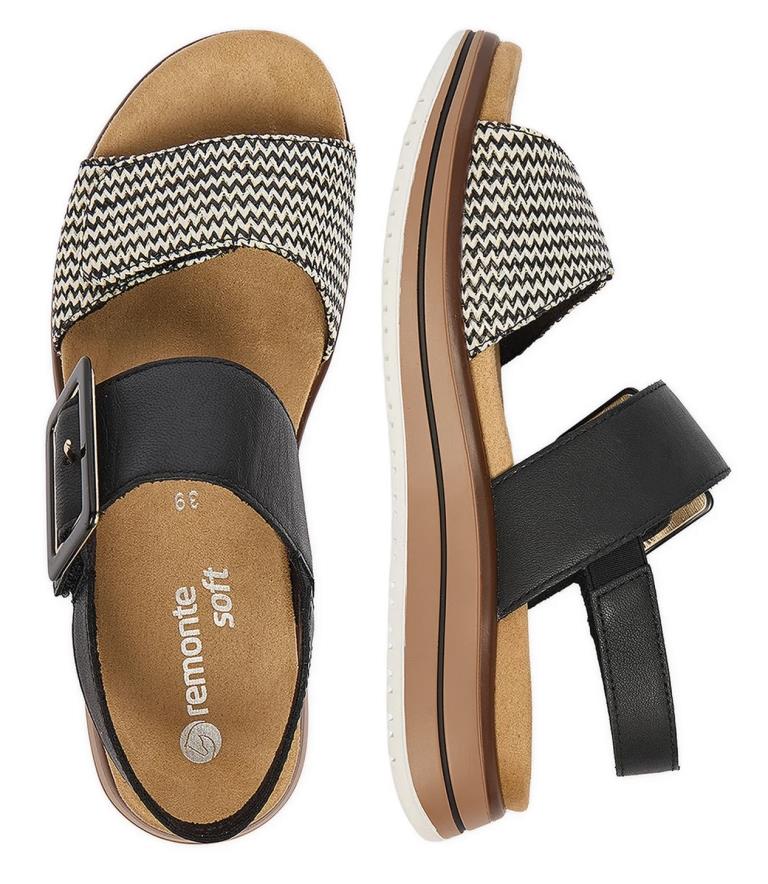 Esta sandalia de la marca Remonte es muy femenina. Sus tiras de piel y textil y su suela sintético son garantía de su confección. Nos fascina su estilo y su feminidad.