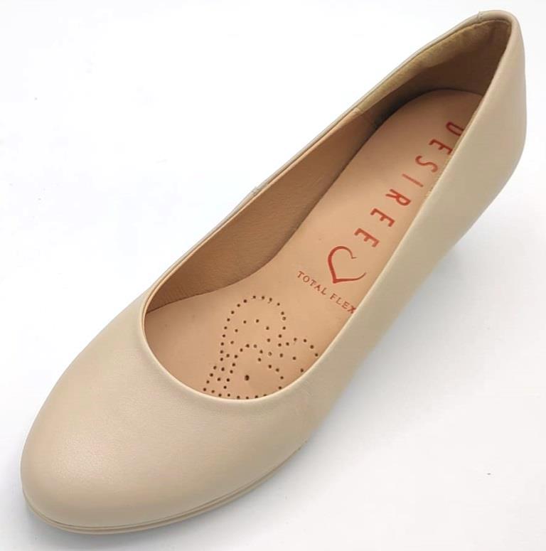 Zapato salón para vestir de mujer de la marca española Desiree modelo Half 1. Piel de la mejor calidad. Plantilla interior comodisima total -flex. Piso de goma antideslizante muy flexible . Tacón muy comodo y estable.