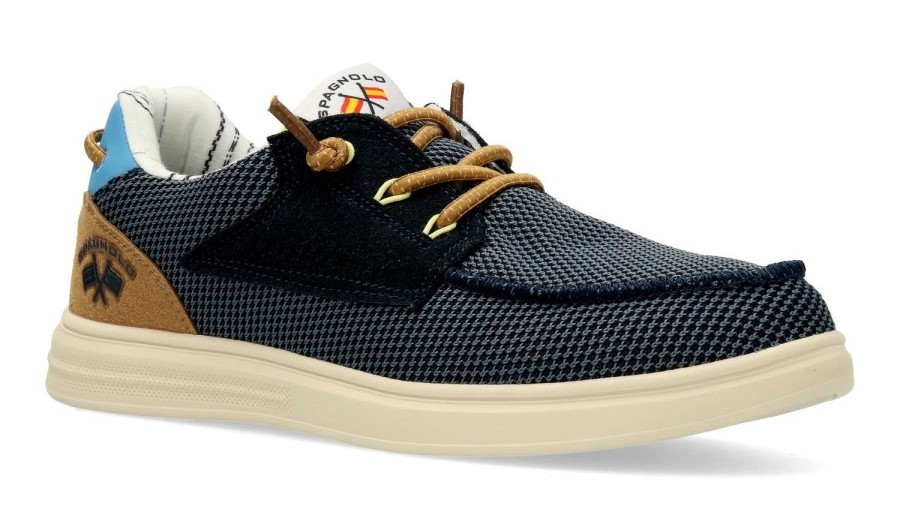 • SPAGNOLO 40063 Zapato náutico lona de hombre, estilo casual. Cierre cordón elástico. Zapatilla cómoda, fabricada en piel sintética y textil, mediasuela de goma ligera. Plantilla acolchada y extraíble. Ideal con tu estilo más informal y arreglado.