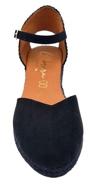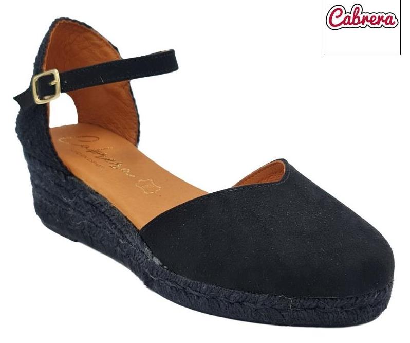 Esparteña con puntera cerrada y talonera con cierre de hebilla.
