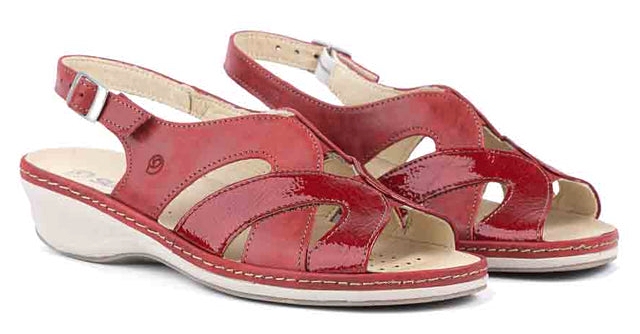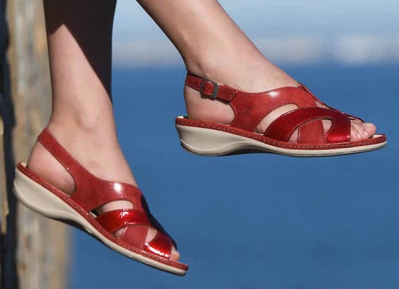 El hecho que la tira tenga anchura es para evitar presionar los dedos, pues reparte mejor el apoyo que el pie ejerce sobre ella. Las tiras de la zona alta del empeine van unidas por un elástico, juntamente con el diseño en forma de pico, impide que opriman el empeine facilitando el ajuste. La plantilla y la suela tienen un grosor y una flexibilidad indicadas para las mujeres que sufran dolor en la planta del pie, o bien de fatiga. Retirando la plantilla acolchada de origen, cabe la posibilidad de colocar una ortopédica. Fabricada por Suave, empresa portuguesa reconocida por tener una buena relación, calidad precio.
